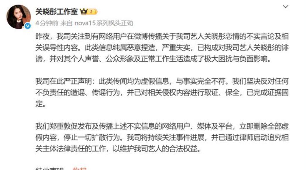 范丞丞工作室也没闲着,发文指责司晓迪发布偷拍内容,还把不相关的素材添油加醋,故意误导大家对范丞丞的私人关系瞎猜,说这种行为已经严重损害了艺人的名誉。 除此之外,司晓迪还在粉丝群里爆料,说王安宇和关晓彤正在谈恋爱。这事儿也没逃过工作室的辟谣,王安宇工作室直言相关言论都是凭空捏造,严重侵害了艺人的名誉权,还造成了社会误导;关晓彤工作室也明确表示传闻是虚假信息,和事实完全不符,已经对侵权内容进行了取证保全,坚决反对造谣传谣。